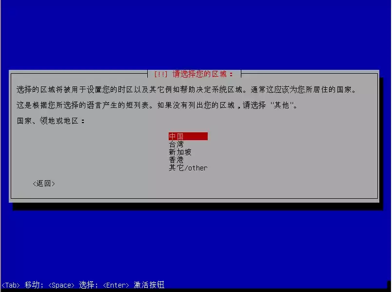 3,选择区域,这里通过选定所在区域来设置系统语言。