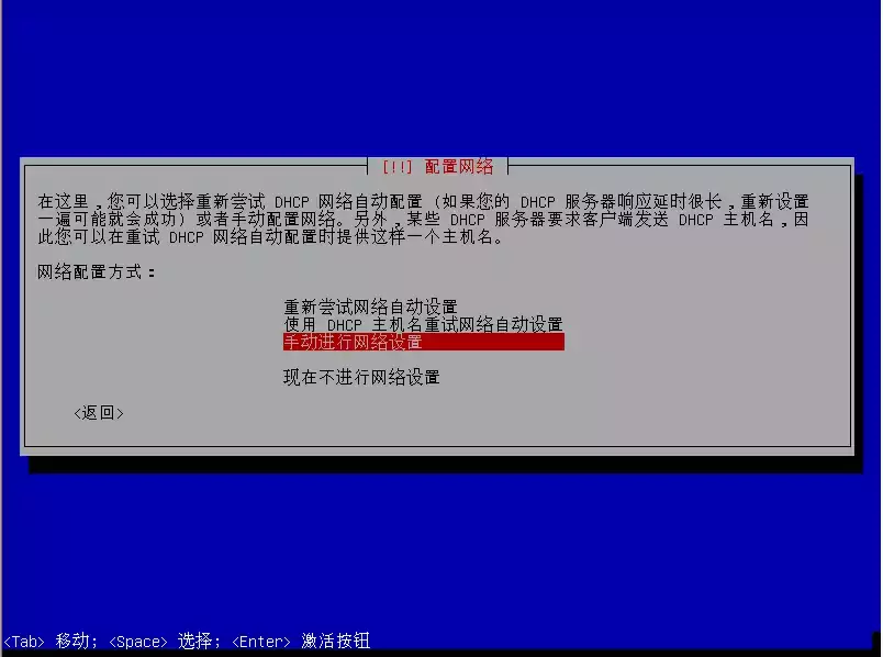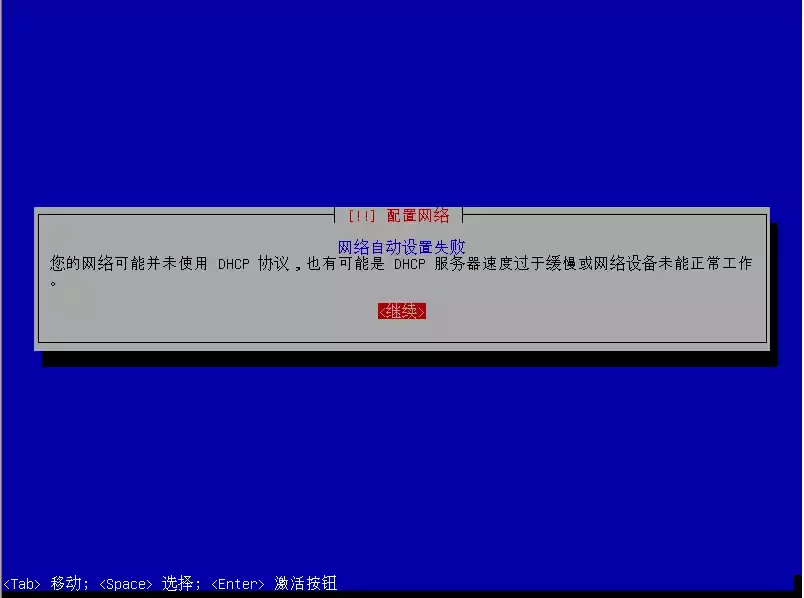 接下来会使用DHCP配置网络,如果成功则会跳转至第七步,否则会提示DHCP配置失败,需要手动配置网络。