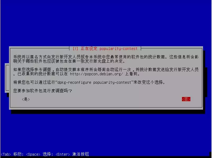 12,设定popularity-contest,根据需要选择,一般选择“否”。