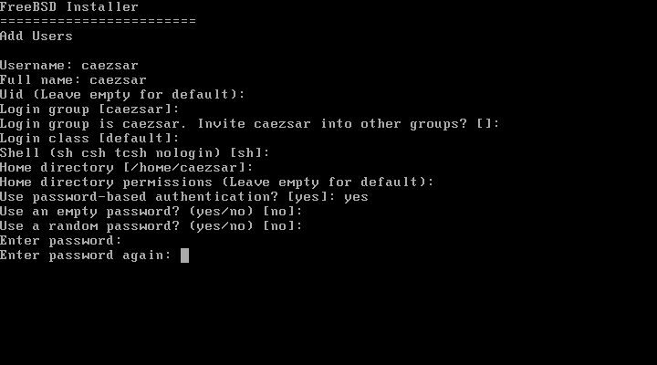 设置一个安全的密码,按[enter] 继续,该密码不会显示在屏幕上。
