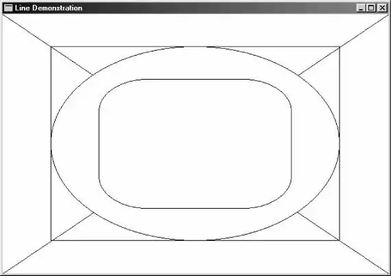 在视窗之外写入画面一般是不恰当的,但对於一些不同寻常的应用程式来说,这样做很方便(您还可通过在呼叫GetDC时使用一个NULL参数,从而取得整个萤幕的装置内容代号,不过这在文件中已经提到了)。在第十三章中,我们将使用CreateDC函式来取得一个印表机装置内容代号。