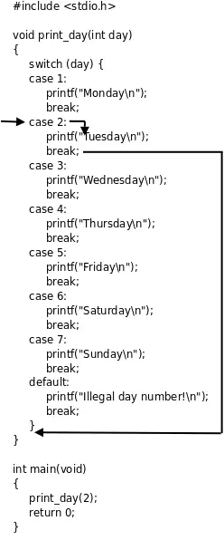 进入case后如果没有遇到break语句就会一直往下执行,后面其它case或default分支的语句也会被执行到,直到遇到break,或者执行到整个switch语句块的末尾。通常每个case后面都要加上break语句,但有时会故意不加break来利用这个特性,例如: