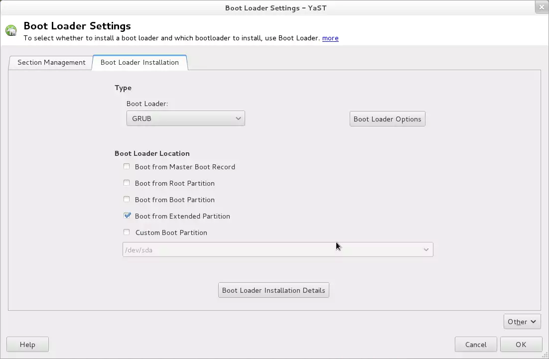 2,Boot loader Installation中设置grub安装选项,可以选择安装的模式和磁盘。
