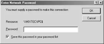 If your first attempt to access a Samba share results in a dialog box asking for a password for IPC$, as shown in Figure 3-1, it is probably because you neglected either or both of these two steps, and the Samba server did not recognize the encrypted password that the Windows system sent to it. Another possible dialog box that might come up is the one shown in Figure 3-2, which was presented by a Windows 2000 client.