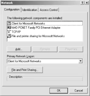 To make sure both services are installed on your Windows system, double-click the Network icon in the Control Panel to open the Network dialog box, as shown in Figure 3-3.