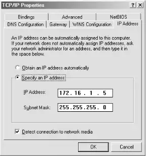 Just like any Unix system (or any other system that is using TCP/IP), your Windows systems will need an IP address. If you are using DHCP on your network, you can configure Windows to obtain its IP address automatically by using a DHCP server. Otherwise, you will need to assign a static IP address manually along with a netmask.[2]