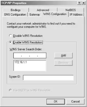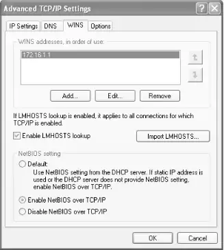All Windows versions support a backup method of name resolution, in the form of a file called LMHOSTS [5] that contains a lookup table of computer names and IP addresses. This exists for "historical purposes," and is a rather awkward method of name resolution because it requires the administrator (i.e., you!) to keep copies of LMHOSTS up to date on every single Windows system on the network. To be fully effective, LMHOSTS would have to be updated every time a new system were added to (or removed from) the network. Of course, there might be ways to automate that process, but a better option would be simply to run a WINS name server that is intentionally designed to solve that specific problem.