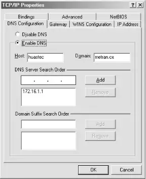 In this example, the first name server in the list is 127.0.0.1, which indicates that the Samba server is also a DNS server for this LAN.[6] In that case, you would use its network IP address (not 127.0.0.1, its localhost address) for your DNS server when configuring Windows. Otherwise, use the other addresses you find in the lines beginning with nameserver. Try to select ones on your own network. Any name servers listed in /etc/resolv.conf should work, but you'll get better performance by using a server nearby.